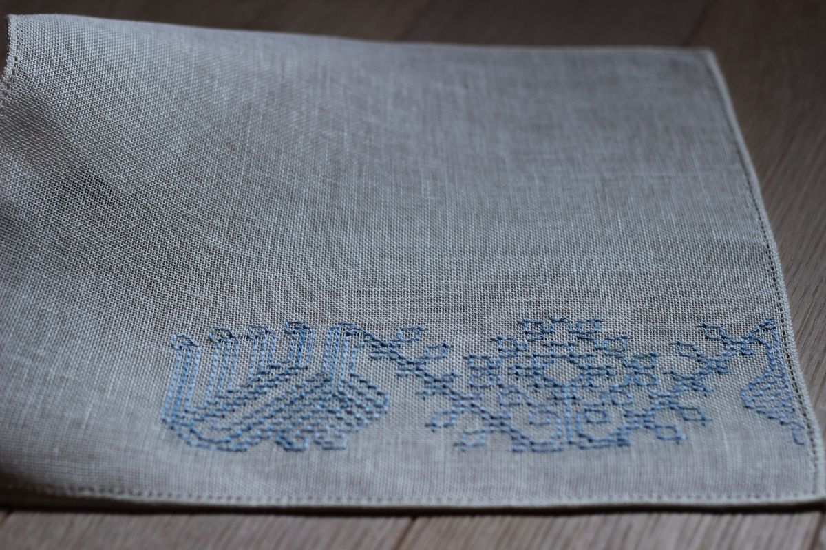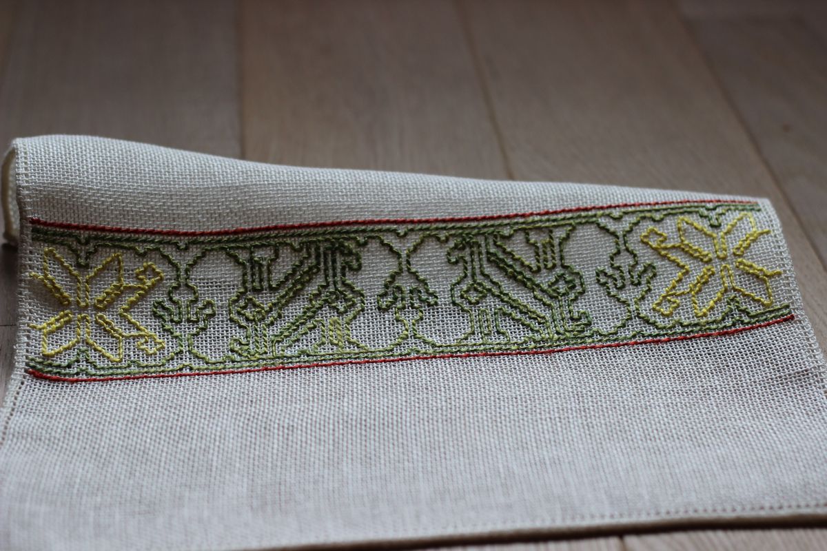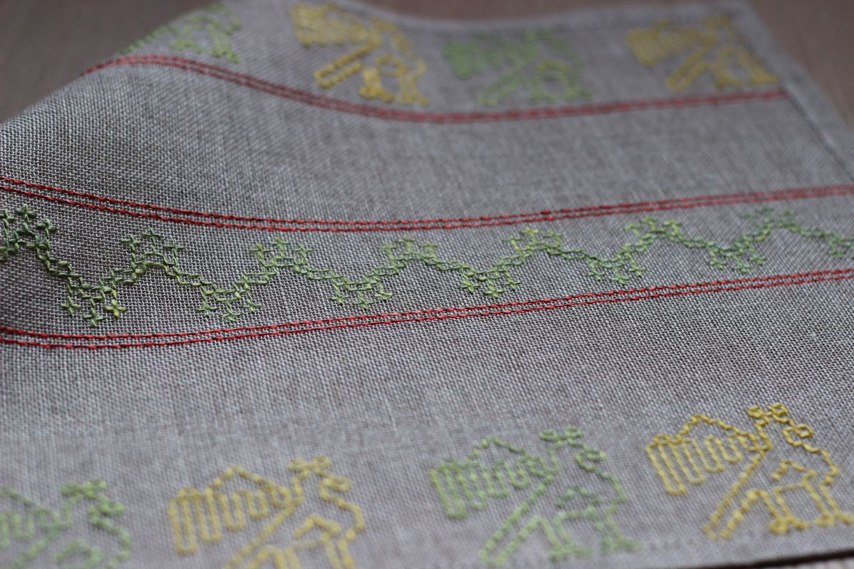 Counted thread embroidery, double running stitch following a geometrical pattern