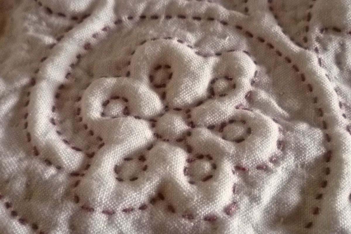 Ricamo libero, tecnica medievale di tessuto trapuntato e imbottito