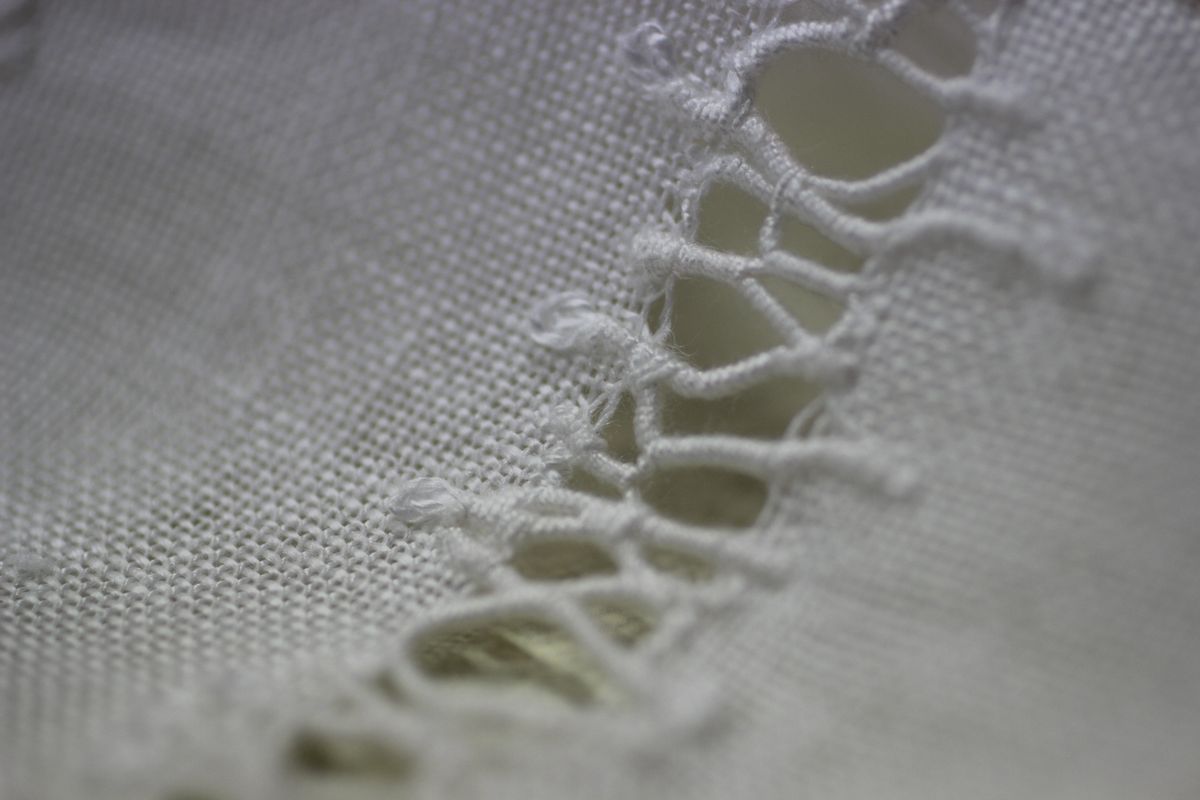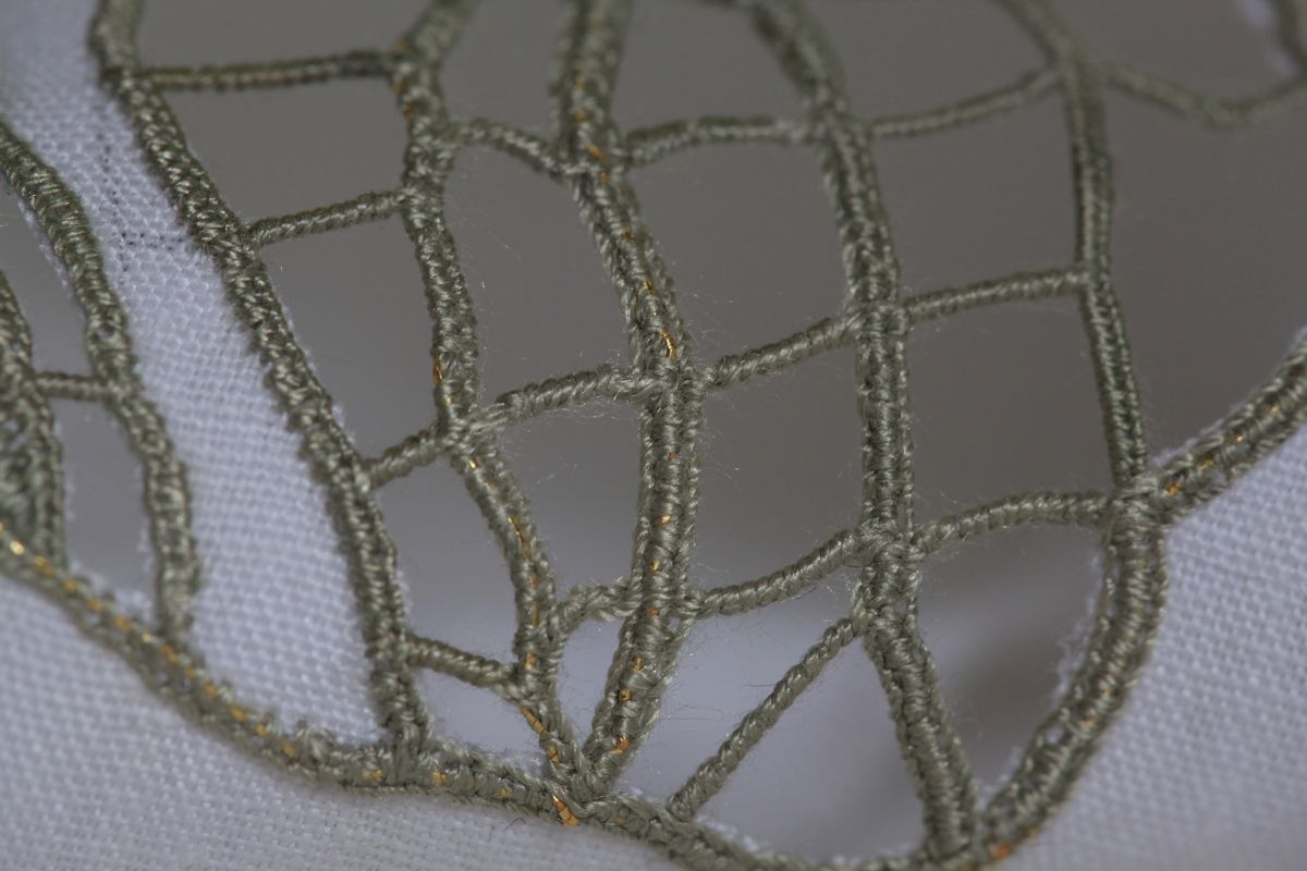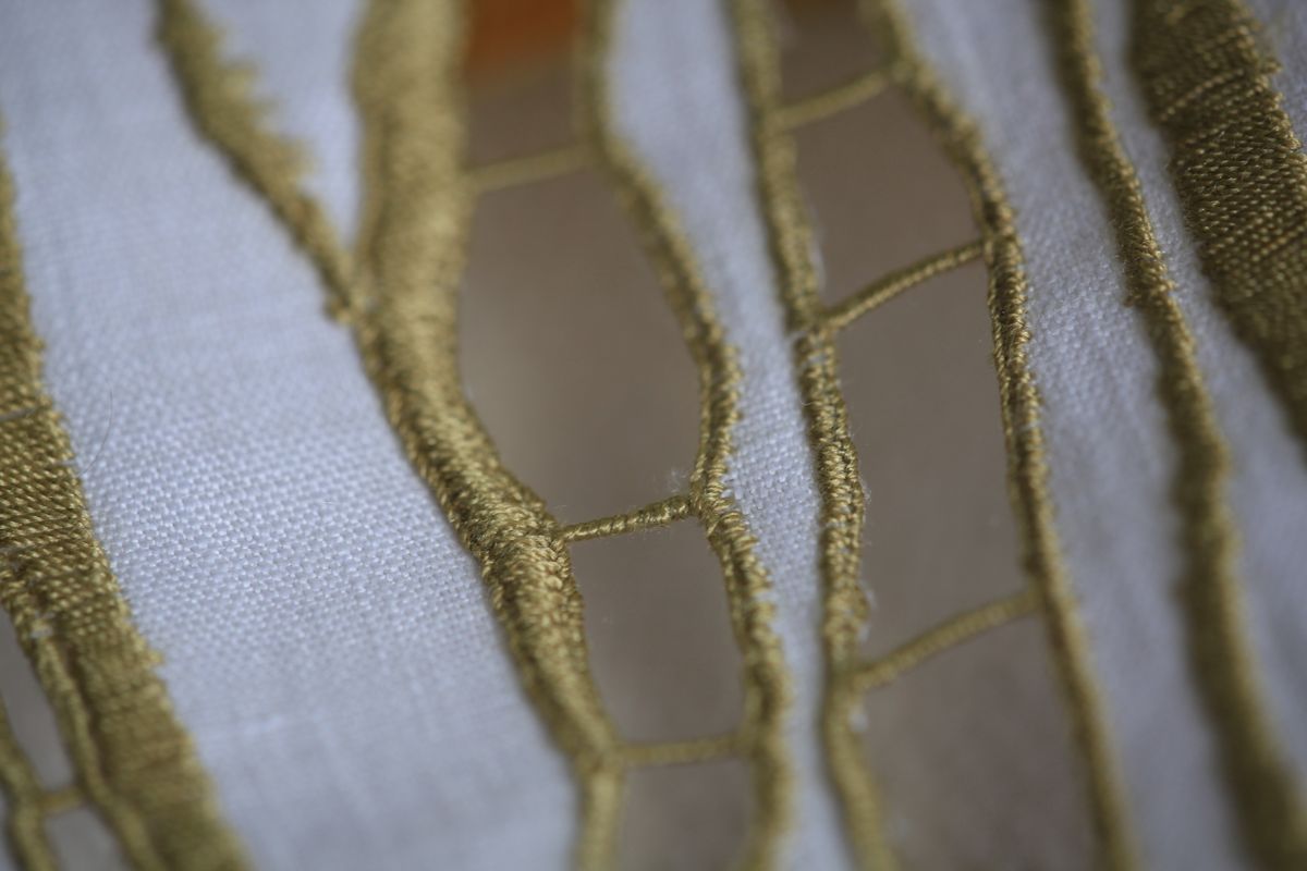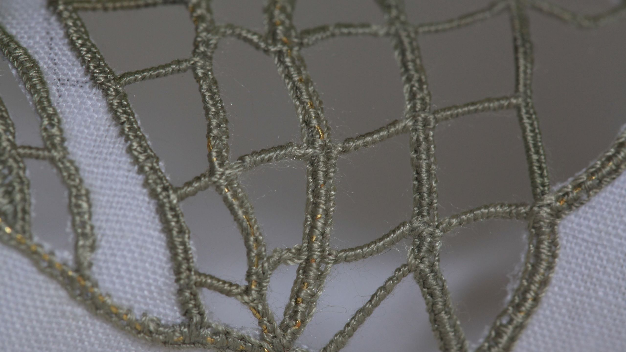 Ricamo a giorno, trame sfilate in una direzione e ricamate a creare effetti decorativi