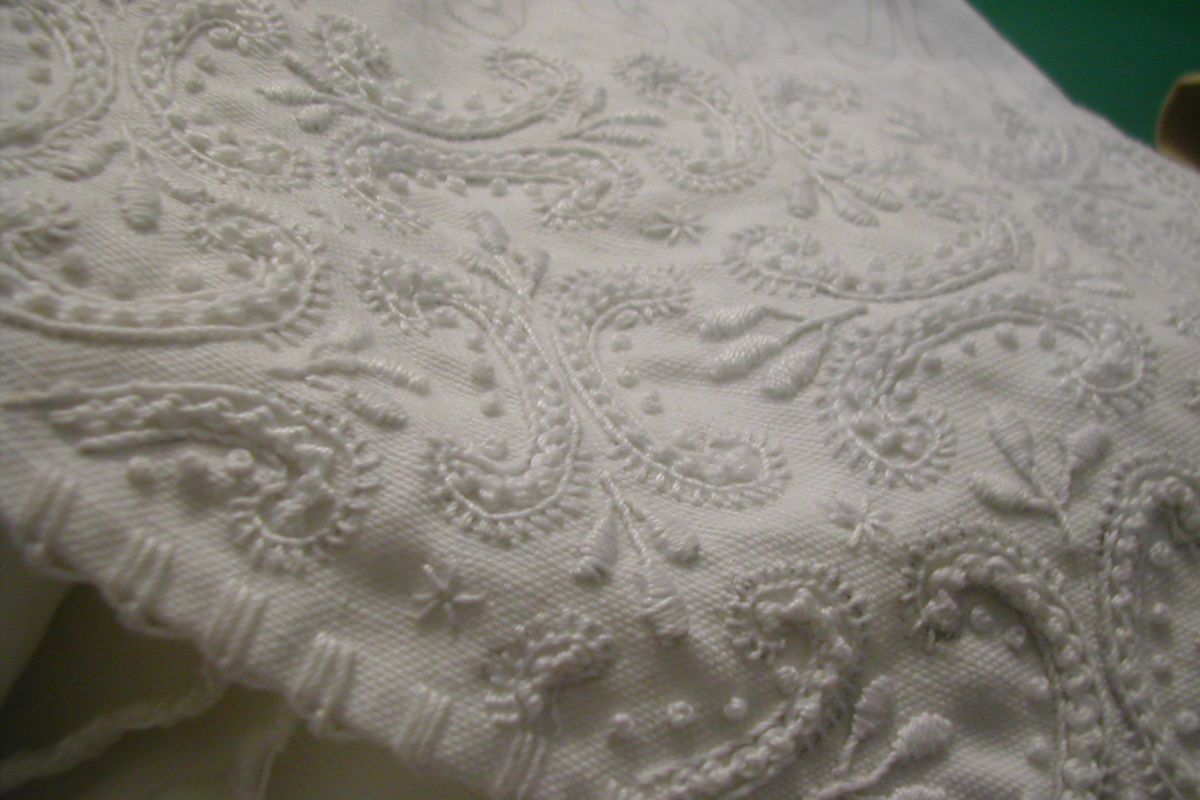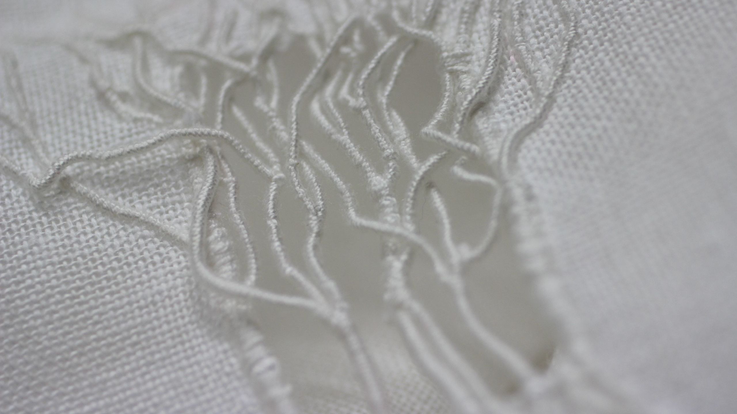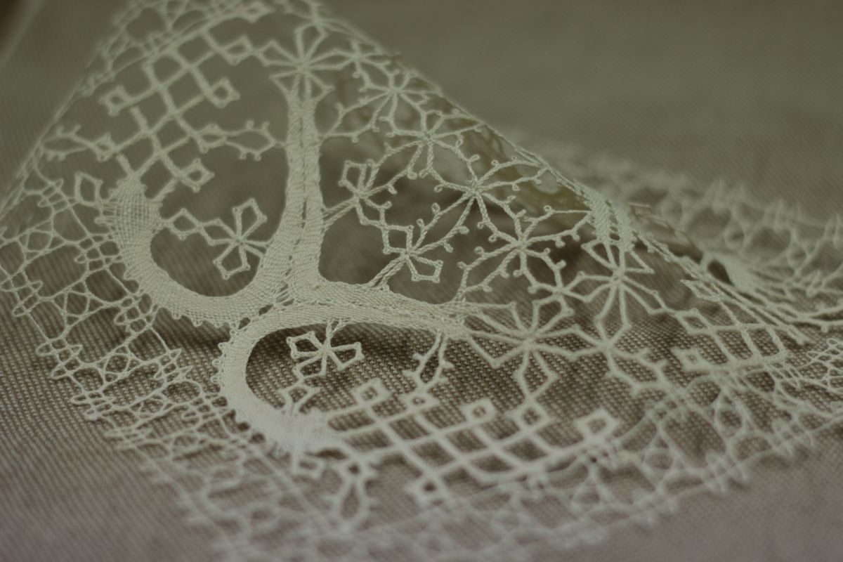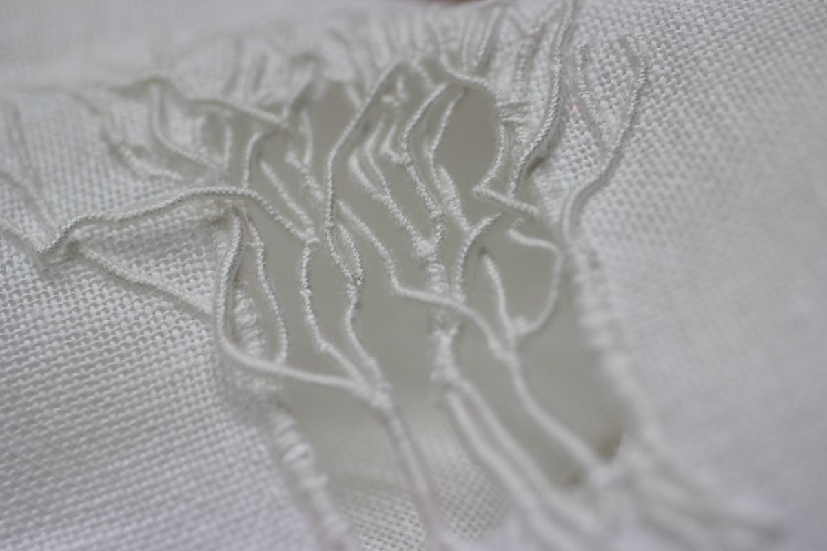 Ricamo a giorno, trame sfilate in una direzione e ricamate a creare effetti decorativi