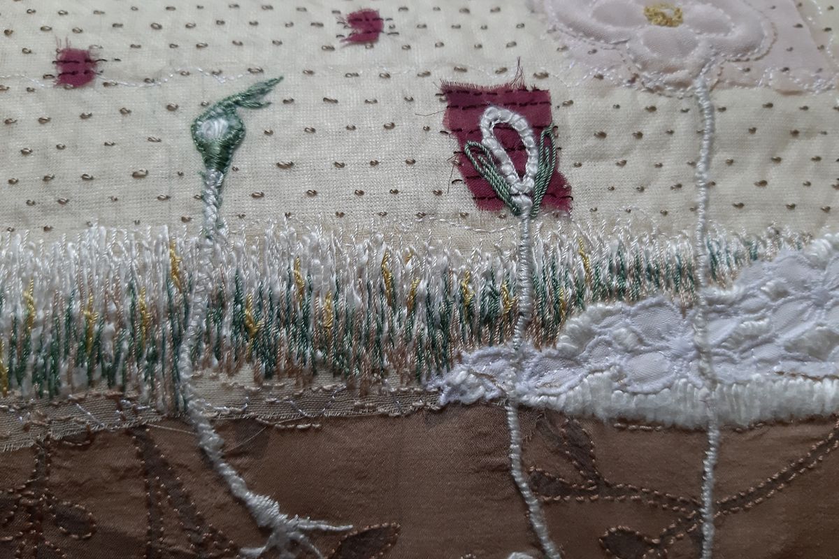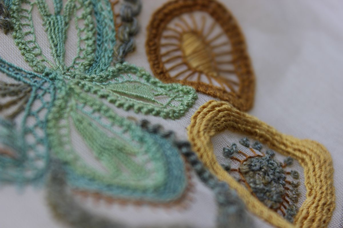Free embroidery using a wide selection of traditional stitches with a raised effect