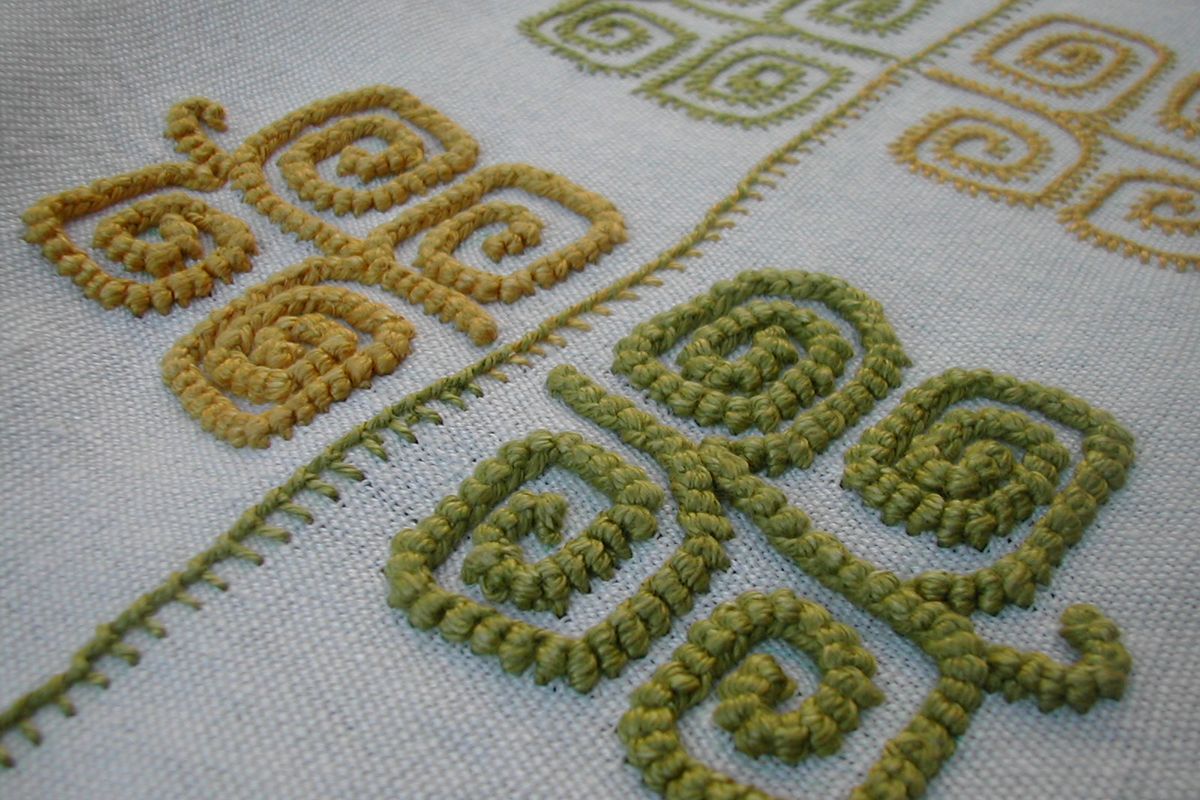 Free embroidery, a medieval technique to create a stuffed and quilted fabric